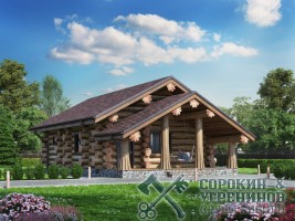 Сруб бани рубленый из большого бревна кедра диаметром 500мм площадью 81,62м2. Размер сруба 8Х15,5 метров по осям. Баня с террасой для барбекю. Парная, мойка, комната отдыха и сунузел. Сруб рубленый вручную (канадская рубка), брёвна окоренные гидро-окоркой (водой под высоким давлением), а так, же это можно сделать скобелем или лопатой, или строганное рубанком. Объем бревна в срубе 90м3.